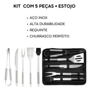 Kit Churrasco Pegador Espátula Pincel Estojo Utensílios Em Inox