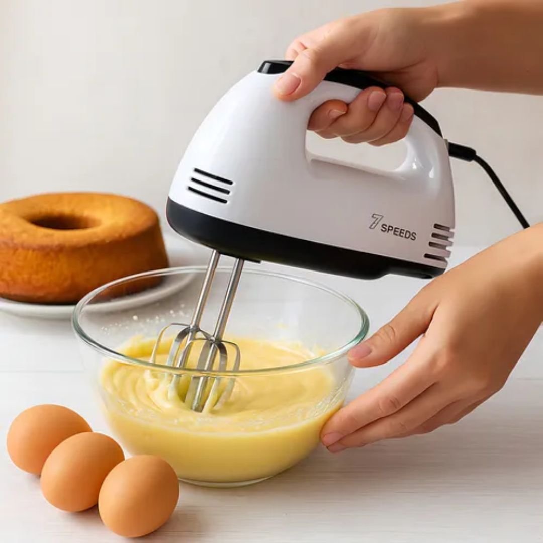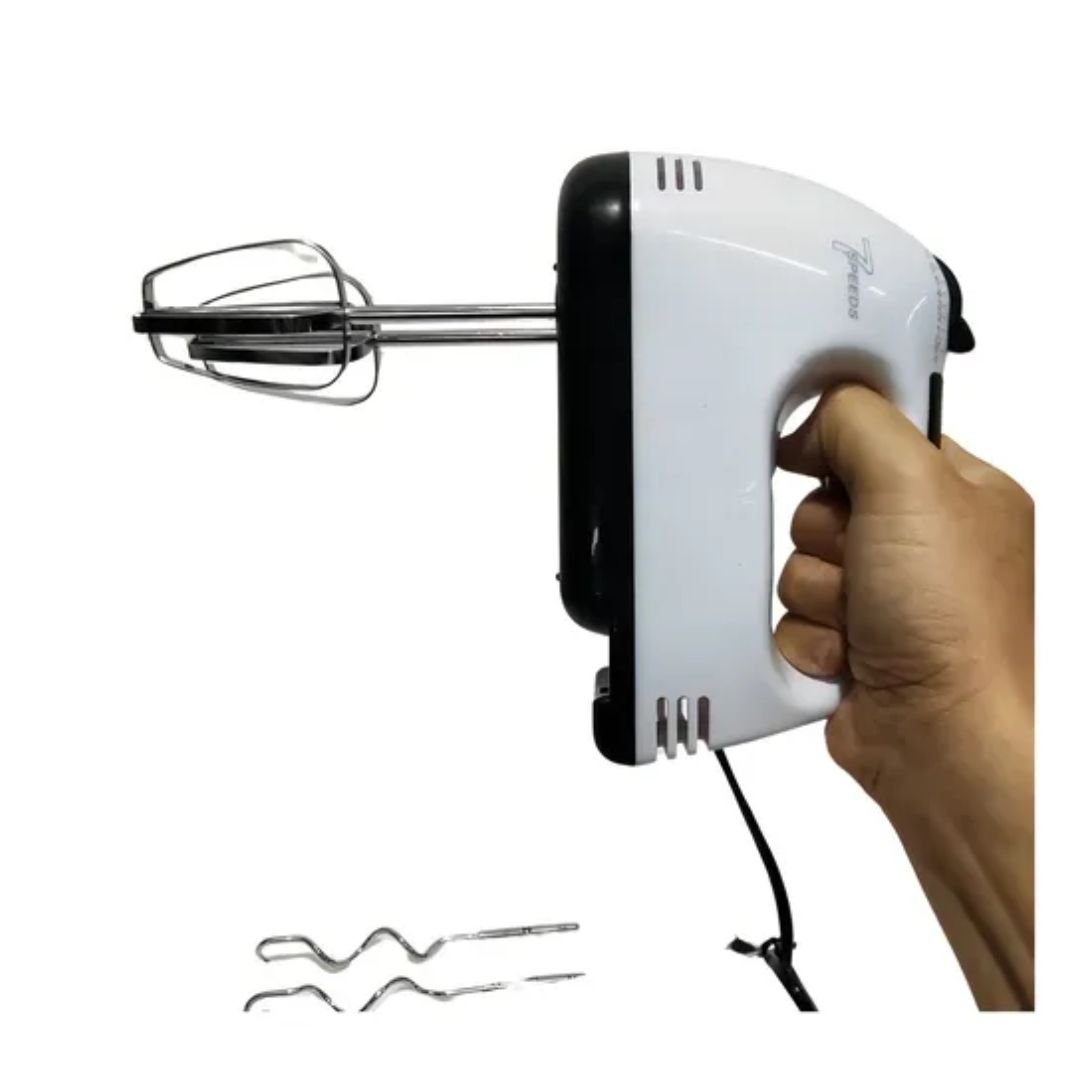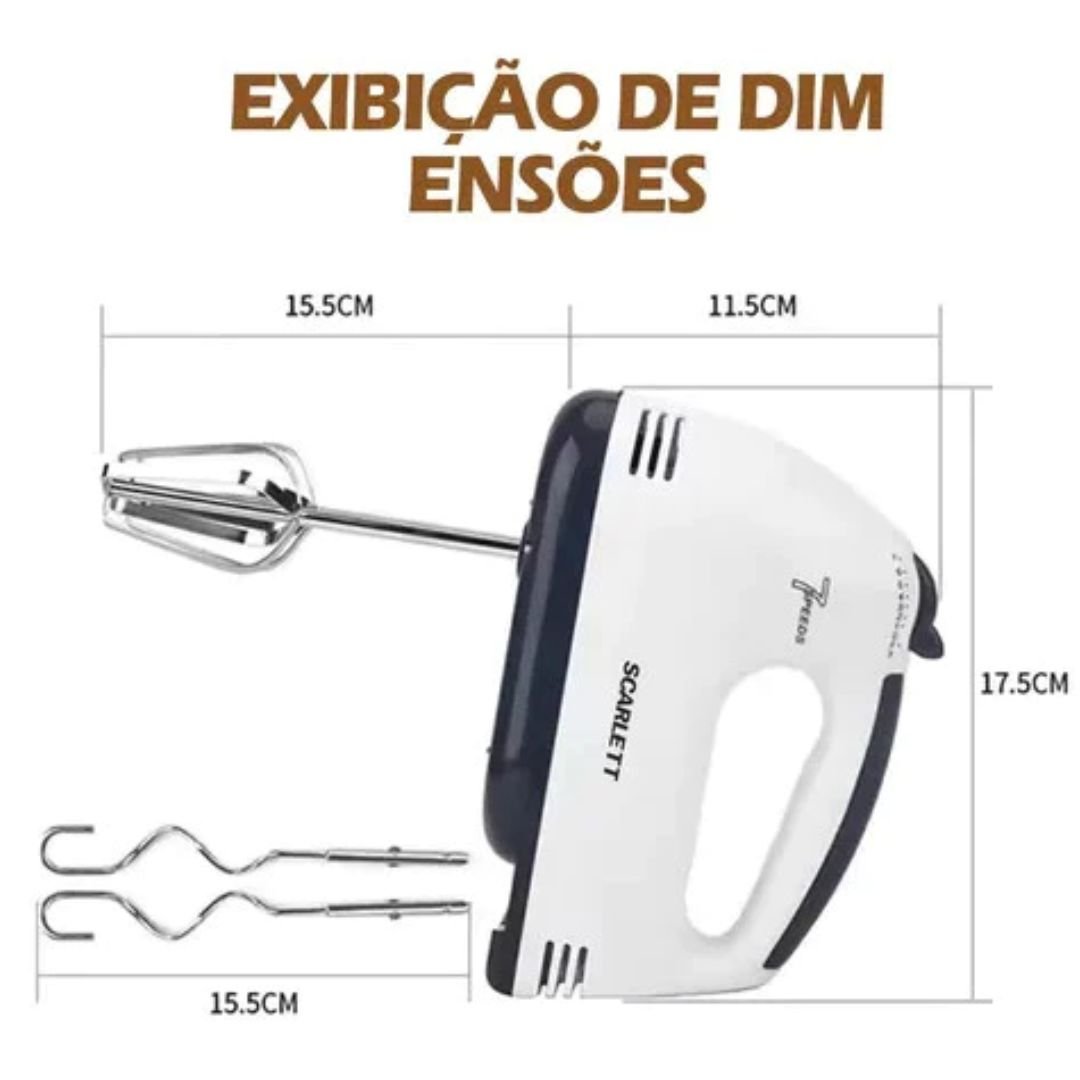 BENEFÍCIOS: 7 velocidades para ajuste conforme sua receita. Botão ejetor que facilita a troca dos batedores com segurança. Acompanha 4 acessórios: 2 batedores e 2 ganchos para massas. Compacta e prática para o uso diário.