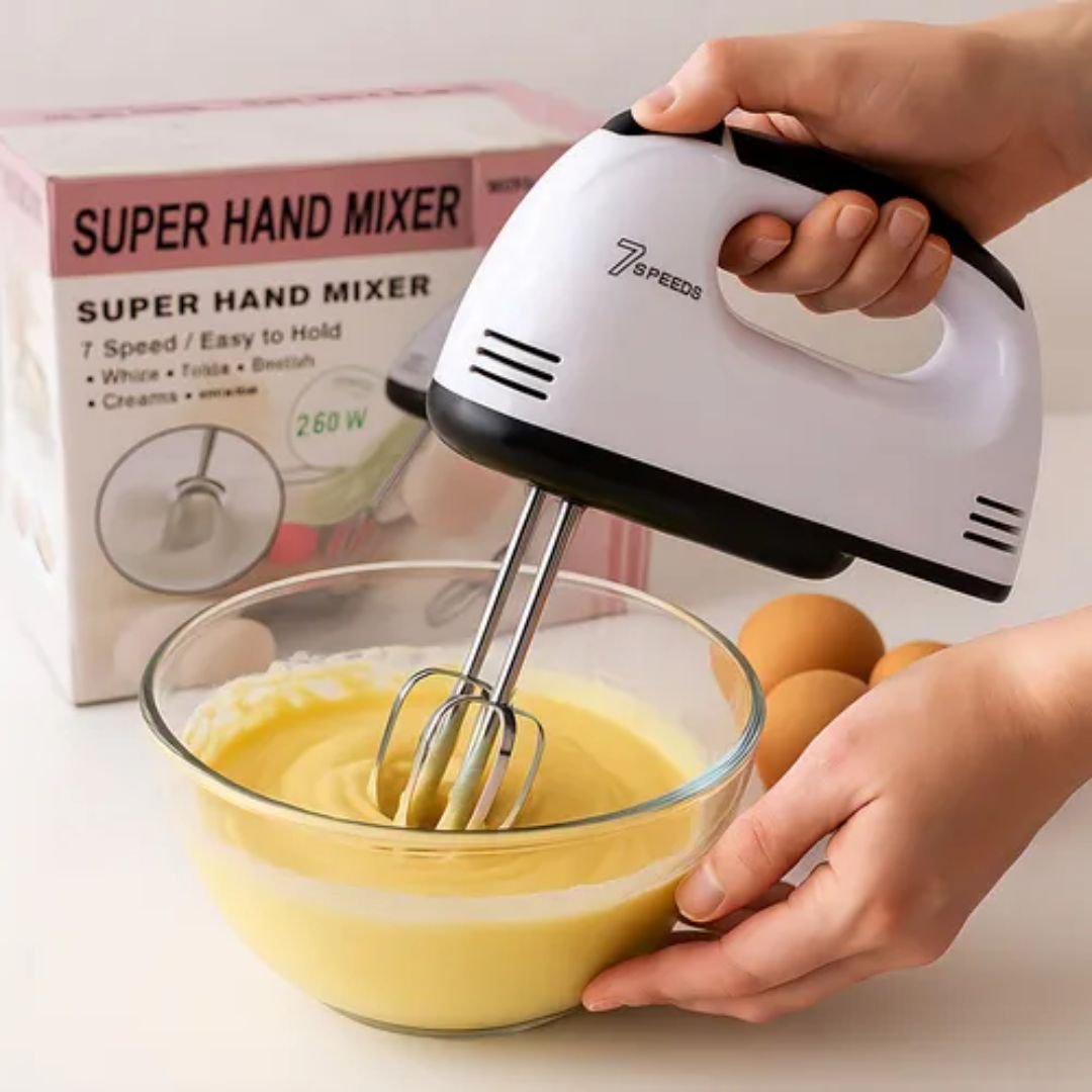 Facilite o preparo das suas receitas com a Batedeira Manual Super Hand Mixer HE-133. Com 260W de potência e 7 velocidades, ela é ideal para misturar, bater e preparar massas leves, chantilly, claras em neve e muito mais. Seu design leve e fácil de manusear torna o uso confortável no dia a dia. Conta com botão ejetor de segurança para troca rápida dos batedores e 4 acessórios que atendem a diferentes funções na cozinha.